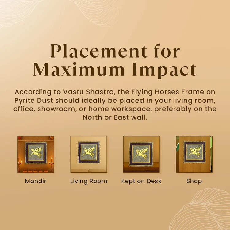 Flying Horse – Signifies determination, freedom, and high achievement. In Feng Shui and Vastu, the flying horse is believed to bring rapid career growth, recognition, and the courage to overcome challenges.