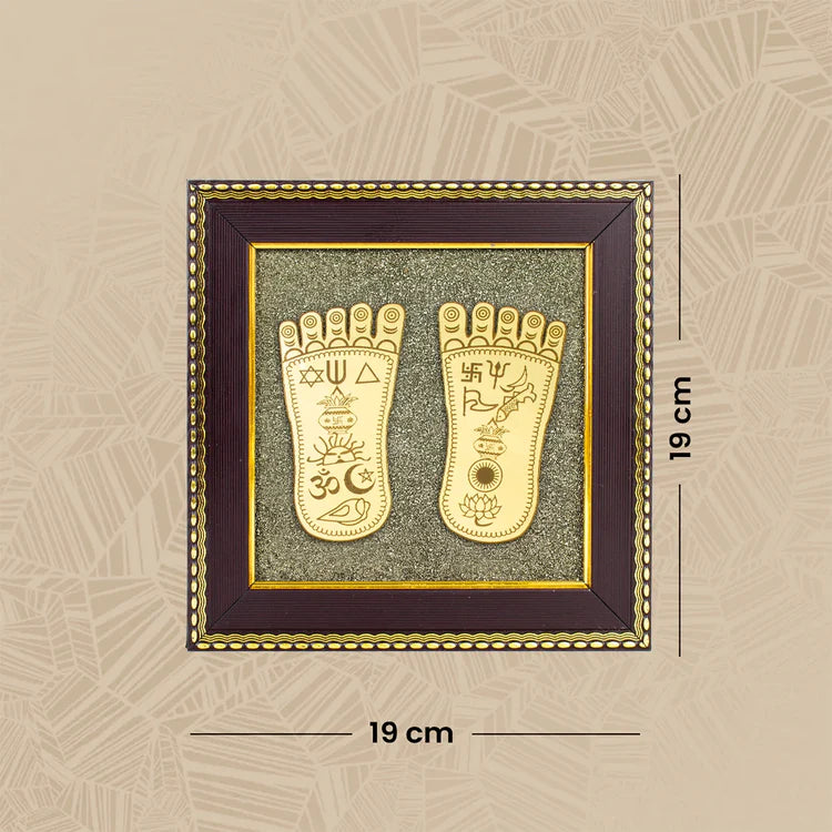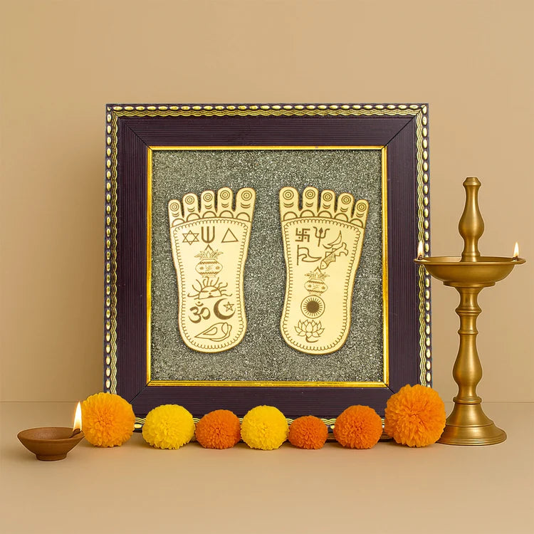Bring home the sacred blessings of Maa Lakshmi, the Goddess of wealth and abundance, with the beautifully crafted Maa Lakshmi Charan Paduka on Pyrite Frame from VedicGood. This spiritually charged frame features the symbolic footprints (Paduka) of the Goddess, believed to attract fortune, prosperity, and positive energy wherever they are placed.