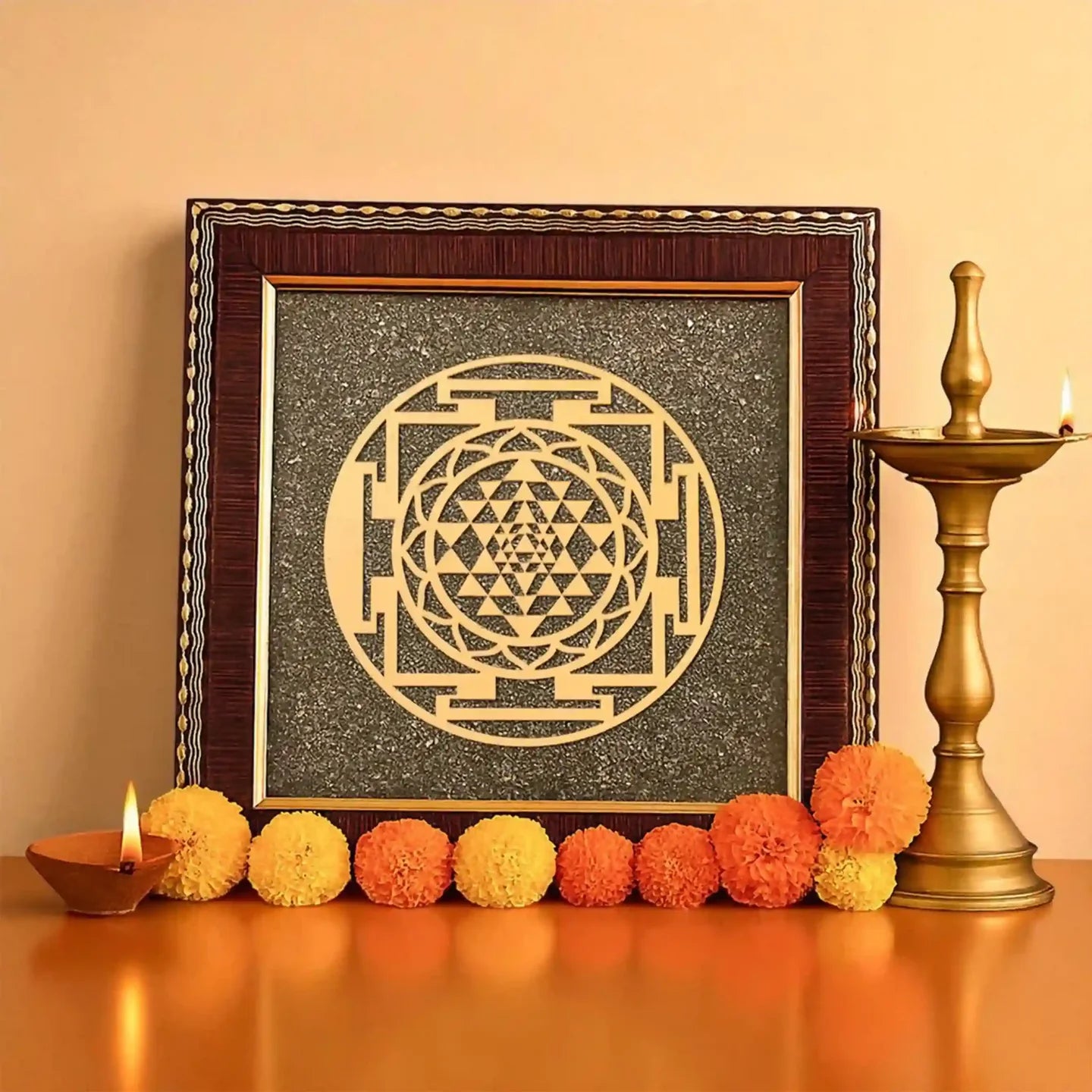 Sri Yantra – A revered geometric pattern symbolizing the union of the divine masculine and feminine. It is known to remove obstacles, attract abundance, and bring spiritual growth.